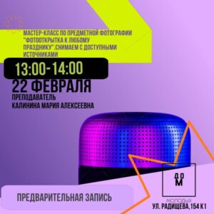 📸 22 февраля в 13.00 приглашаем в Дом молодых на мастер-класс для подростков «Фотооткрытка к любому празднику. Снимаем с доступными источниками света».