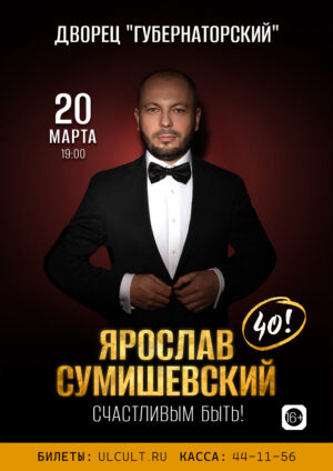 Ярослав Сумишевский, народный певец и любимец публики, представляет свою новую концертную программу «Счастливым быть!». Дети до 3-х лет при отсутствии отдельного места — бесплатно. При предоставлении свидетельства о рождении (Фото)