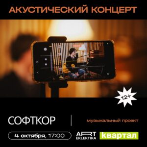 Осень опускается на город. Вихрь жёлтой листвы приносит с собой холодные вечера. Что же спасет от этого? Можно заварить горячий чай, укутаться в плед, надеть свои любимые тёплые носки. А можно согреться на уютном акустическом концерте Софткора. 4 октября в креативном пространстве «Квартал» вас ждут лирические истории, которые никого не оставят равнодушными и подарят тепло в эти прохладные деньки. • 4 октября, 17.00 Вход: 200 руб Если собираетесь прийти, ставим + в комментариях. |