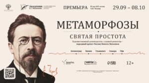 • 19:00–20:30 – показ спектакля «Метаморфозы. Святая простота». В год 165-летия А.П. Чехова (12+)