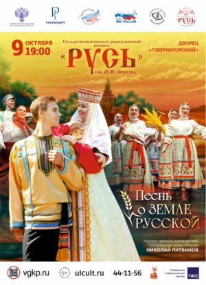 Благодаря Всероссийскому гастрольно-концертному плану Министерства культуры Российской Федерации ансамбль «Русь» имеет уникальную возможность поделиться своим творчеством и через традиционные русские мелодии и зажигательные танцы перенести зрителей на наших концертах в мир народной культуры, наполненный празднично-обрядовыми традициями. Стать частью этого значимого события, вместе отпраздновать силу и красоту нашей земли, вспомнить её защитников и отдать дань уважения тем, кто каждый день трудится ради нашего завтрашнего дня».