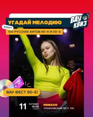 Вау — квиз «ВАУ ФЕСТ 90е» Угадай мелодию. Азарт. 100 русских хитов 90 и 00″