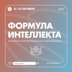 Чемпионат по интеллектуальным играм «Формула интеллекта» для школьников 8-11 классов стартует в сети Информационных центров по атомной энергии (ИЦАЭ)🧠 Чемпионат проводится с 15 сентября по 10 декабря 2025 года включительно и состоит из трёх этапов: — региональный этап пройдёт с 15 по 27 октября в ИЦАЭ Ульяновска; Сбор заявок на участие в период с 15 сентября по 14 октября. Заявки на участие можно подать на почту Информационный центр по атомной энергии Ульяновска ulyanovsk@myatom.ru. В региональном этапе чемпионата могут принять участие школьные команды, включающие не более 6 человек. — финальный этап состоится 15 ноября 2025 года. Прошедшие в финал команды участвуют в онлайн-турнире все вместе, в одно и то же время, независимо от своей территориальной зоны; — заключительный этап – очный мастер-класс для команды-победителя Чемпионата, ведущим которого станет Сергей Абрамов – двукратный обладатель Олимпийского кубка стран по «Что? Где? Когда?» в составе сборной России, победитель открытого Кубка России по «Что? Где? Когда?», ведущий чемпионатов мира по спортивному «Что? Где? Когда?». Мастер-класс состоится в период с 17 ноября по 10 декабря 2024 года. Чемпионат пройдёт по правилам спортивного «Что? Где? Когда?»: в игре одновременно могут участвовать семь команд, которым после чтения вопроса даётся минута на размышление. После этого команды пишут ответ на бланке и сдают его ведущему. Собрав все бланки, ведущий озвучивает правильный ответ. Побеждает команда, набравшая наибольшее количество баллов на площадке. Вопросы игры будут на тему физики, литературы, географии, истории, научных открытий. Для участия необходимо отправить заявку на почту ИЦАЭ ulyanovsk@myatom.ru, с собой на игру нужно принести заполненное согласие на обработку персональных данных на руководителя и каждого участника команды. РЕГИСТРАЦИЯ КОМАНД: vk.cc/cPIBge |