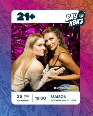 Если хочется, то можно 😎 Собираемся на новый квиз для взрослых: у нас тут ни стыда, ни совести, ни ссылок на источники вопросов: 🔞25 октября (СБ) 19:00 — «21+» в «MAISON» (Московское шоссе 100Б) Разогреемся во время тура-прелюдии, еще один тур проведем с мультимедиа-вопросами, ненадолго прервемся на рекламу, но она тоже будет специфической. А еще подключим особые игровые механики: разнообразие — это всегда хорошо 😏 Регистрация в резерв: ulsk.wowquiz.ru/schedule |