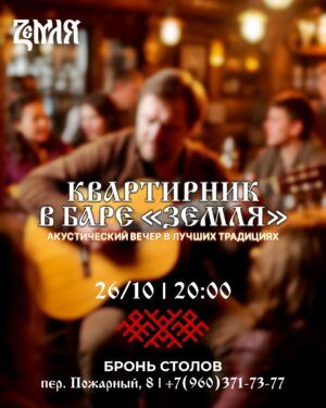 В день 26 октября, когда солнце скроется за горизонтом, в 20:00 в баре Земля, соберёмся мы на акустический квартирник🎸