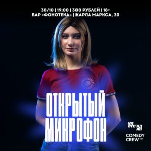 🚩Четверг 30/10 – Открытый микрофон: шоу, где комики проверяют свои новые шутки. На открытых микрофонах может выступить любой желающий, заранее записавшись у ведущего вечера. Именно открытый микрофон — это то, с чего начинали все комики, поэтому не упусти шанс попробовать себя в комедии!
