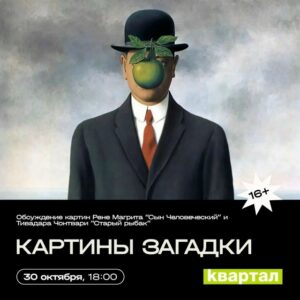 ФОКУС НА ИСКУССТВЕ В креативном пространстве пройдёт обсуждение картин Рене Магрита “Сын Человеческий” и Тивадара Чонтвари “Старый рыбак” в рамках проекта «Фокус на искусстве» (t.me/focusonart). Специальный гость: Анна Богомазова — солистка Ульяновского духового оркестра «Держава». • 30 октября, 18.00 Вход свободный! |