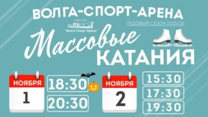🍁Расписание массового катания в эти выходные🍁 – 1️⃣ ноября в 18:30🎃|20:30 – 2️⃣ ноября в 15:30|17:30|19:30 – 3️⃣ ноября в 15:00|19:00 – 4️⃣ ноября в 16:30|18:30 *сеанс длится 1:30 🎫Билеты традиционно на сайте и в кассе Волга-Спорт-Арена! Режим работы кассы: Билеты на сайте: Без проката коньков: Льготный (пенсионеры и инвалиды всех категорий, при предъявлении соответствующего документа): 📍Волга-Спорт-Арена: г. Ульяновск, ул. Октябрьская 26 |