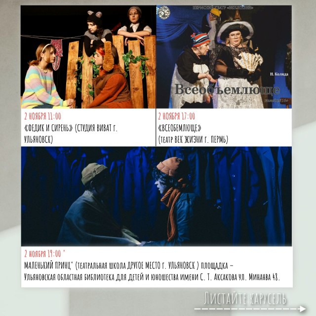 2 ноября 19:00 «МАЛЕНЬКИЙ ПРИНЦ» (театральная школа ДРУГОЕ МЕСТО г. УЛЬЯНОВСК ) площадка –