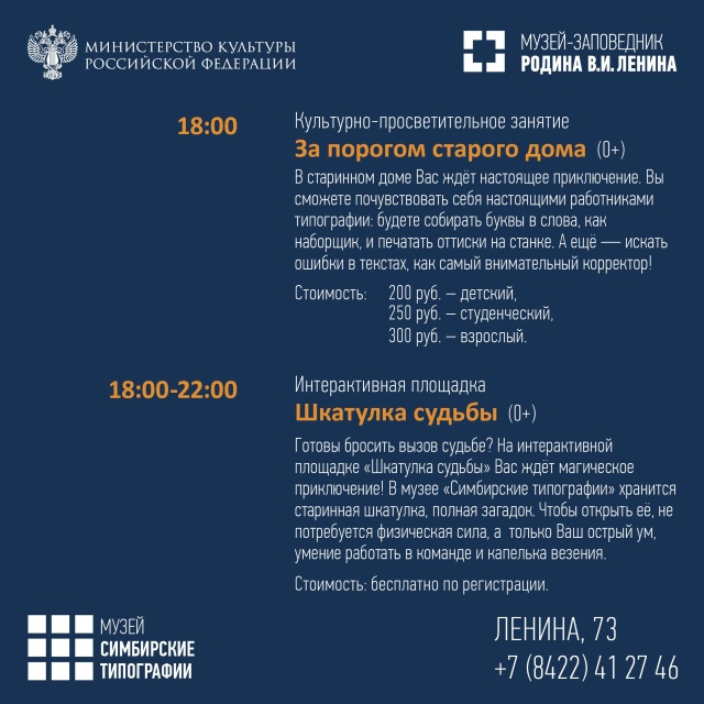 /НОЧЬ ИСКУССТВ/ Ежегодная акция Ночь искусств в этом году пройдет 3 ноября (понедельник). Музеи «Симбирская классическая гимназия» Музей «Симбирские типографии» будет работать с 12:00 до 22:00 Полная программа уже доступна на сайте: ulzapovednik.ru/afisha/noc…