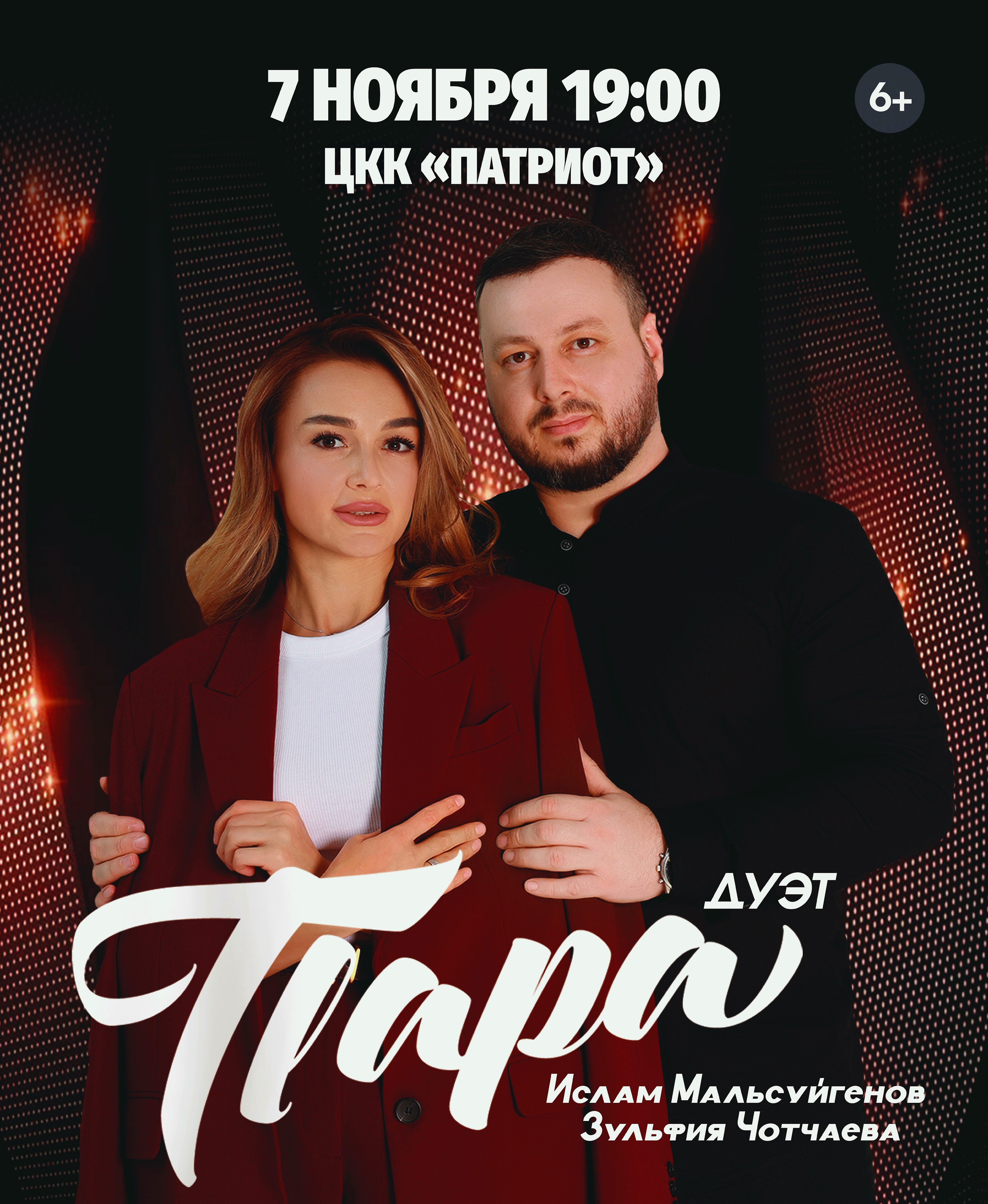 Спешим вас обрадовать — очередной концерт дуэта «Пара» в вашем городе! Не упустите возможность насладиться потрясающим исполнением Зульфии Чотчаевой и Ислама Мальсуйгенова!