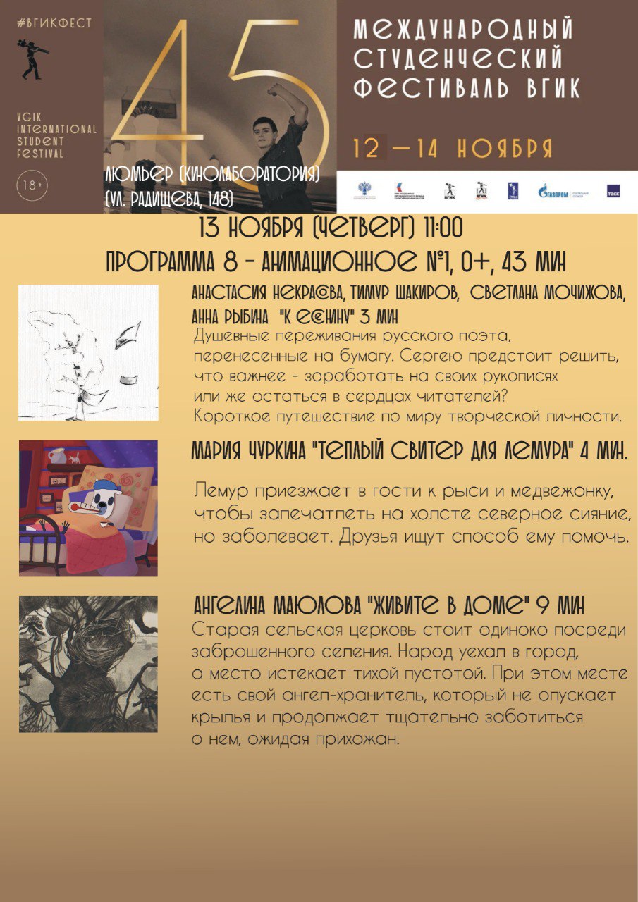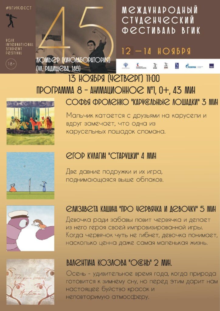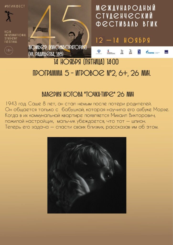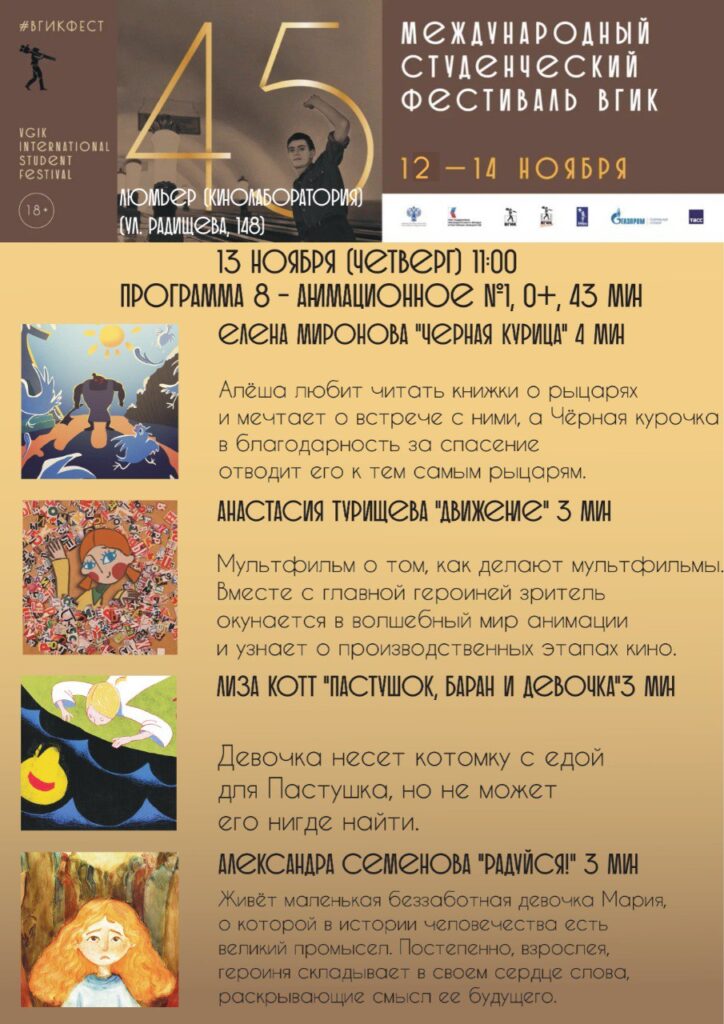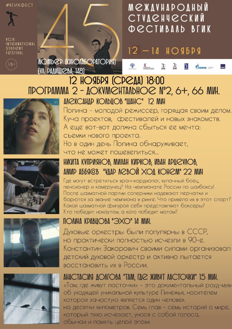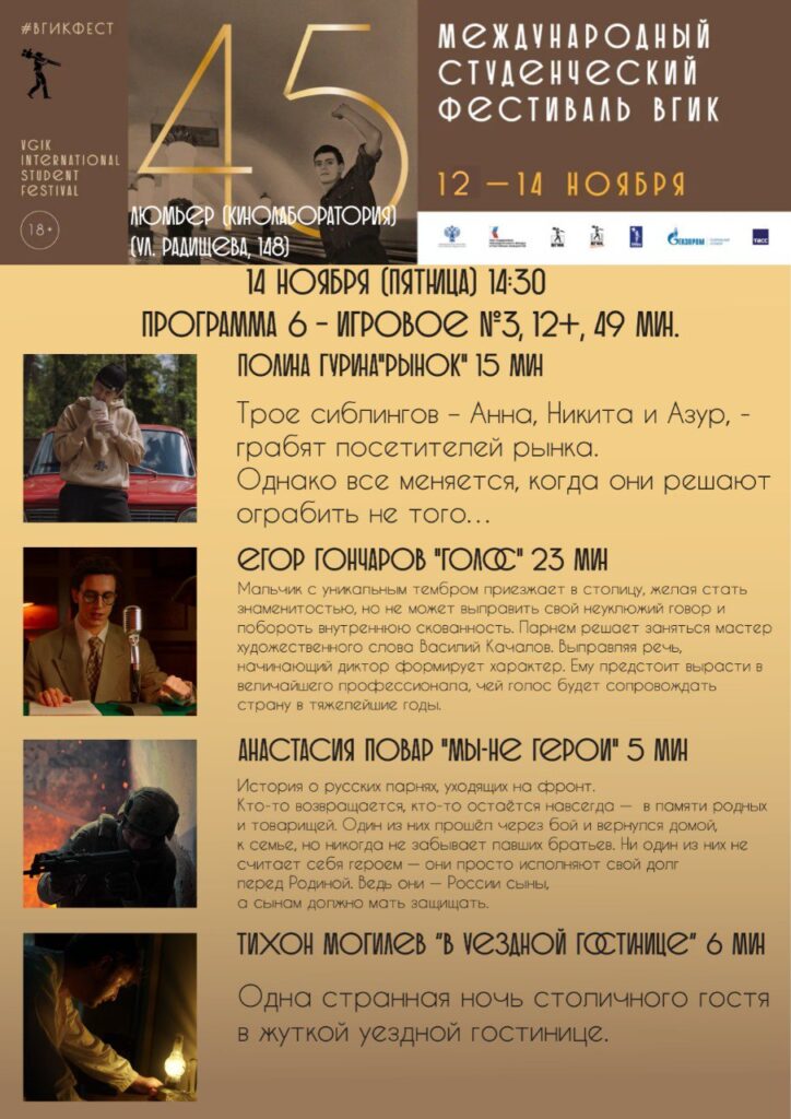 Программа 45 Международного студенческого Фестиваля ВГИК