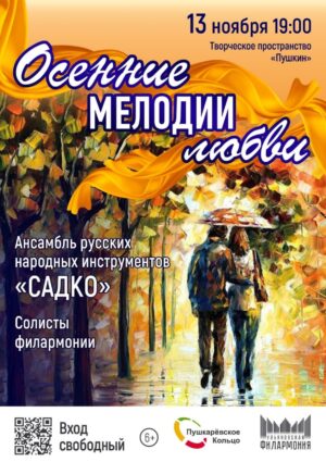 13 ноября в 19:00 в творческом пространстве «Пушкин» прозвучит музыка хорошего настроения в программе «Осенние мелодии любви» от Ульяновской филармонии.