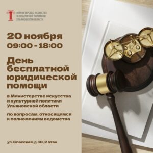 День бесплатной юридической помощи 🤝🏻 📅 20 ноября в Министерстве искусства и культурной политики Ульяновской области пройдет день бесплатной юридической помощи. 💼 Жители Ульяновской области смогут задать свои вопросы специалисту юридической службы, по вопросам, относящимся к полномочиям ведомства, с 9:00 до 18:00 (перерыв с 13:00 до 14:00): ☎ по телефону: 8 (8422) 73-70-82 |
