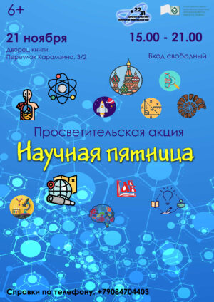 Дворец книги приглашает на «Научную пятницу» 21 ноября с 15.00 до 21.00 Ульяновская областная научная библиотека приглашает самых любознательных на «Научную пятницу» (6+). Это масштабное событие станет завершением проекта «Наука в научке», который стартовал в январе 2025 года. Все любители науки смогут принять участие в чайной церемонии и узнать всё о химии чая, познакомиться с грандиозной выставкой энциклопедий «Вселенная в алфавитном порядке», решить нескучные задачки по математике, рассмотреть всевозможные минералы и раскрыть тайны литературной флористики. На лекции фольклориста Евгения Сафронова будет возможность по-новому взглянуть на знахарей и колдунов Ульяновской области. Знатоки родного края смогут проверить свои знания, приняв участие в краеведческом квизе «Симбирский экспресс». Обязательна предварительная регистрация! Стоимость участия 200 рублей с человека, действует Пушкинская карта. Каждый сможет своими глазами увидеть дореволюционные издания о научных открытиях в России, а также посетить научно-популярные беседы и обзоры, презентации, викторины, просмотры документальных фильмов, интерактивные программы. В программе «Научной пятницы» также и площадки от наших друзей и партнёров — научное шоу от музея занимательных наук Эйнштейна, интерактивная выставка фауны от центра естественнонаучного образования и экологического воспитания «Экокампус», увлекательная площадка для любителей природы от специалистов Ульяновского областного краеведческого музея, стендовая выставка «Инженерная мысль» от Государственного архива новейшей истории и многое другое. Справки по телефону +79084704403. |