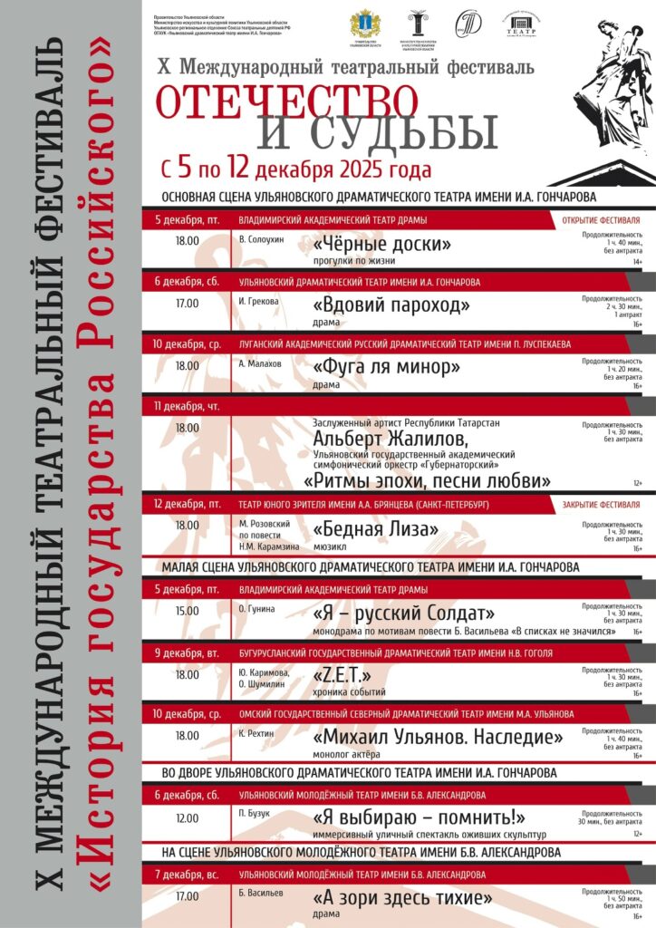 Афиша Х Международного театрального фестиваля «История государства Российского. Отечество и судьбы»