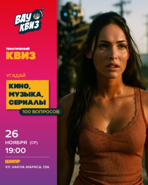 Для одних КМС — это кандидат медицинских наук, для других — кандидат в мастера спорта 💪 А на Вау Квизе никаких кандидатов, только знатоки кино, музыки и сериалов 🤩 📽26 ноября (СР) 19:00 Угадай кино, музыка, сериалы 100 вопросов в «Шипр» (Карла Маркса ул. 13а) В девяностых проведём целый тур, подберем для вас любопытные стоп-кадры и ответы на одну и ту же букву. Целая сотня вопросов о фильмах и музыке — идеальный вечер для любой компании 🥳 Регистрация в резерв: ulsk.wowquiz.ru/schedule |