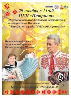 29 ноября в ЦКК «Патриот» состоится Межрегиональный фестиваль «Янра, хут-купас!» («Играй, гармонь!») памяти Олега Мустаева.
