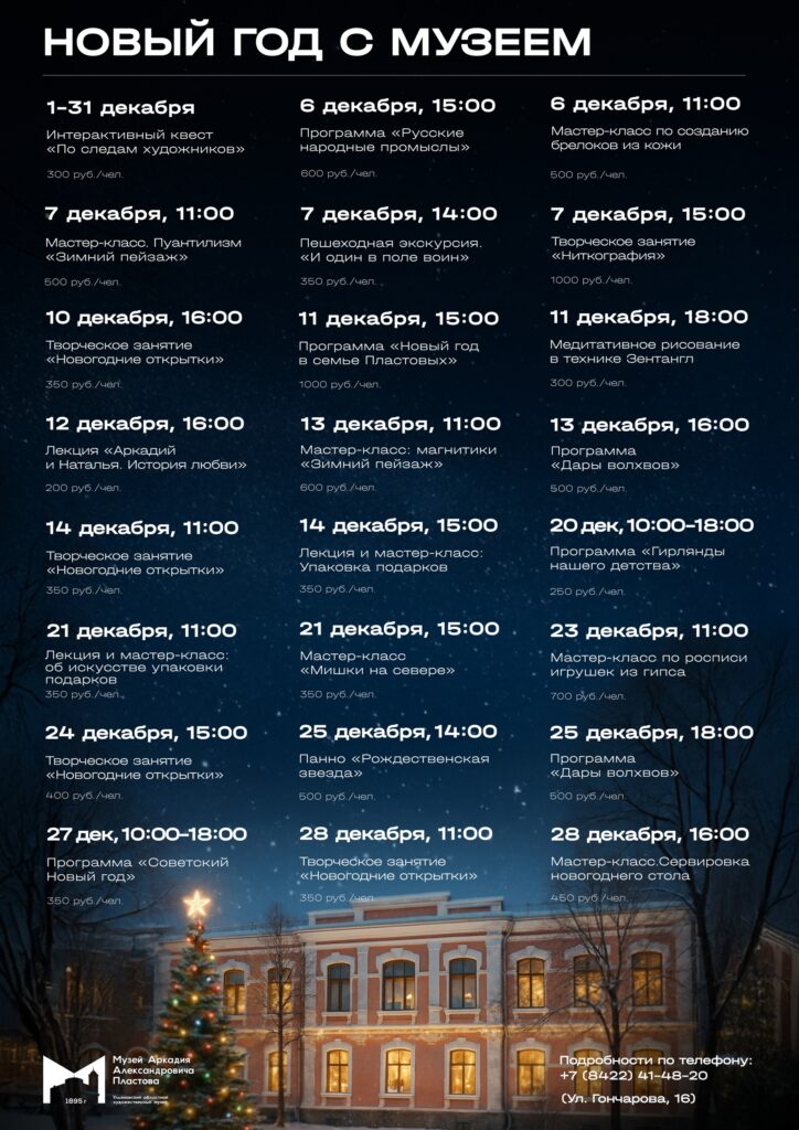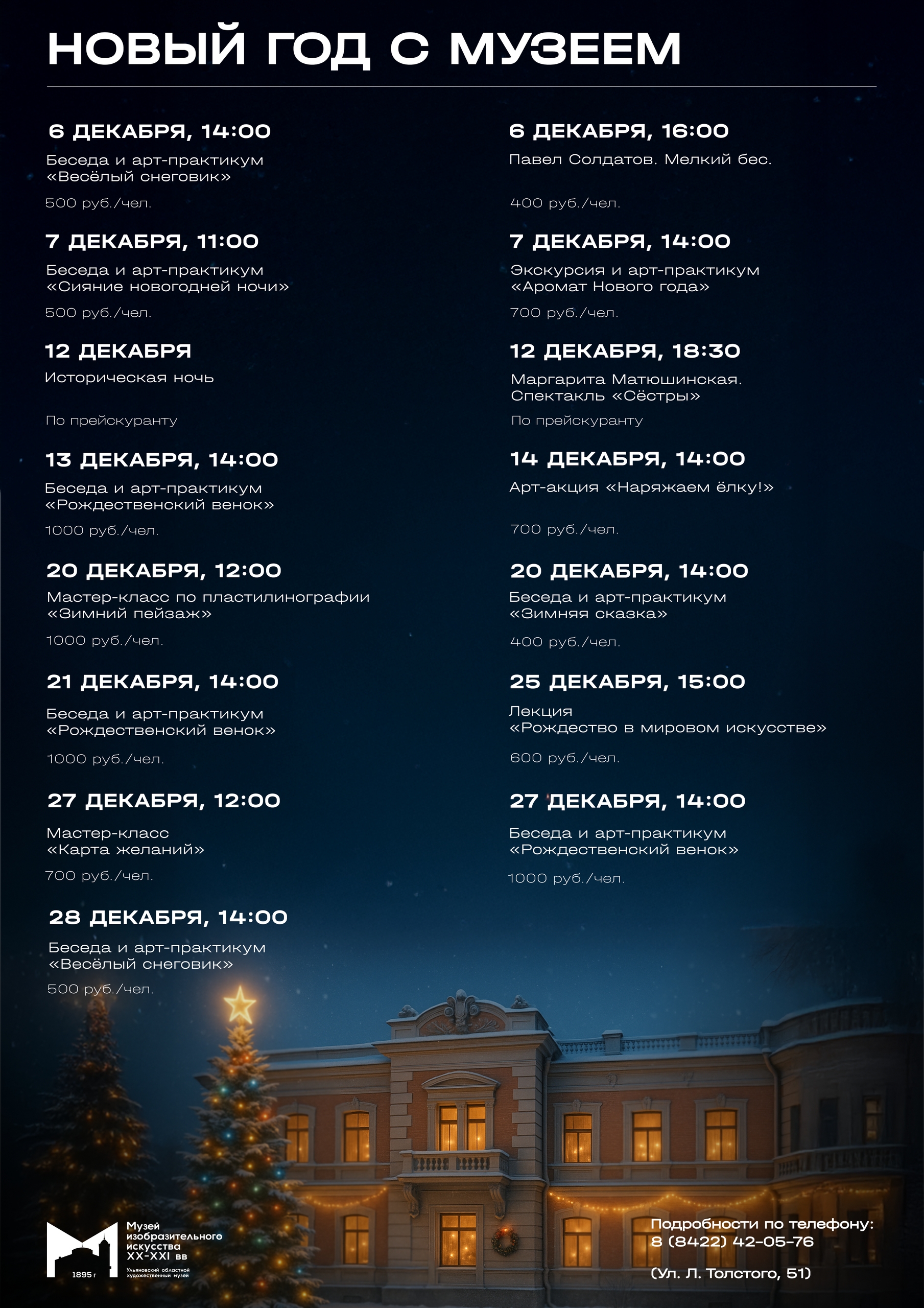 Новогодняя афиша мероприятий в декабре от Художественного музея и филиалов