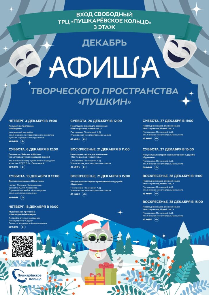Декабрьская афиша мероприятий творческого пространства «Пушкин»