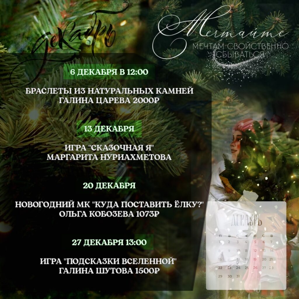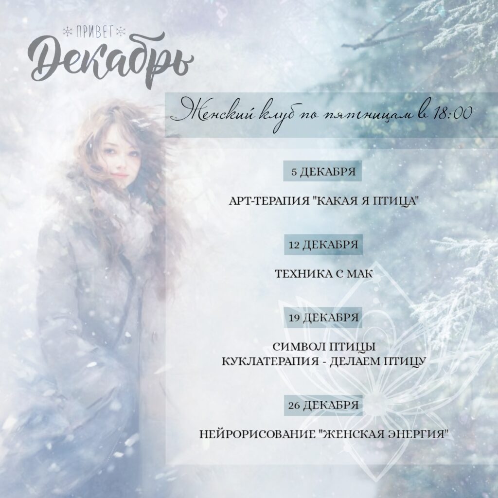 Декабрь в «Созвездии»: Волшебство, уют и ты! ✨ В воздухе уже витает предвкушение праздника, а это значит самое время уделить внимание себе 🌠 Приглашаем вас в наше «Созвездие» В декабре вас ждут • 🧠 Психологические практики: для глубокого понимания себя и подготовки к новому году. Подарите себе этот декабрь — месяц тепла, заботы и волшебных открытий! ❤️ Присоединяйтесь, чтобы встретить Новый год обновленными! 📍 Ленина, 104А