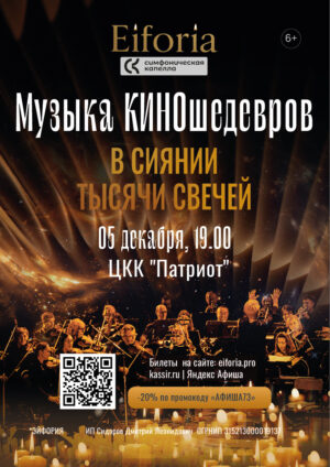 Симфоническое шоу «Эйфория» с концертной программой «Музыка КИНОшедевров: саундтреки в сиянии тысячи свечей» » в Ульяновске! Вас ждёт настоящее музыкальное шоу: более 20 музыкантов симфонического оркестра и дирижёр исполнят легендарные саундтреки к фильмам, которые тронули миллионы сердец по всему миру, а тысячи свечей создадут уютную и магическую обстановку Вы услышите мелодии из фильмов: — «1+1» — «Игра престолов» — «Пираты Карибского моря»; — «Гладиатор» и других шедевров. Вместе с музыкантами зритель отправится в собственное кинопутешествие с виртуозным исполнением композиций из фильмов, которое подарит чувство приятной эйфории. Музыка, тысячи свечей и проработка деталей делают шоу от «Эйфории» ярким и эмоциональным! По промокоду АФИША73 скидка-20% Билеты в кассе Центра креативных компетенций «Патриот» |