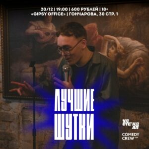 • Дата: суббота 20/12 • Место: «Gipsy Office» | Гончарова, 30 стр. 1 • Сбор гостей – 18:30 | начало – 19:00 • Вход: 600 рублей
