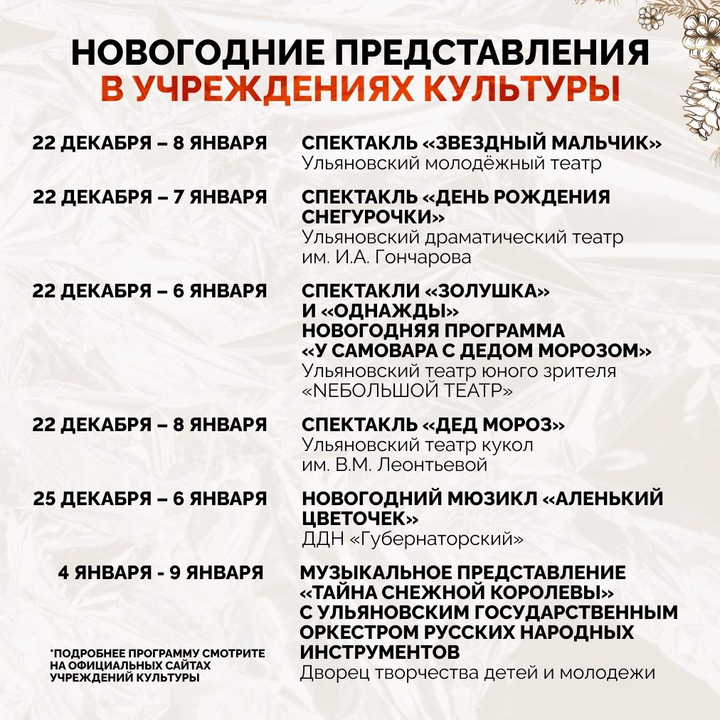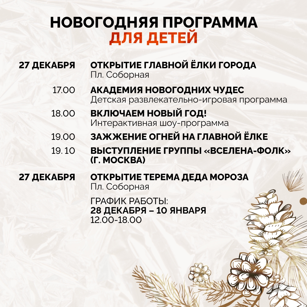 Новый год уже на пороге! 🌲 Пришло время решать, как провести это волшебное время года. Хотите насладиться катанием с горки в парке или отправиться на новогоднее шоу в театре? В нашем городе и области для вас запланированы самые яркие и сказочные мероприятия. Проведите это время с близкими, погрузитесь в атмосферу праздника и создайте незабываемые новогодние воспоминания. Не упустите возможность – будет очень интересно! Программу главных событий смотрите в карточках. |