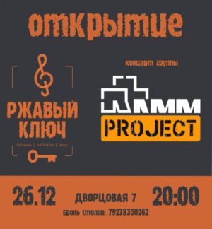 Открытие «Ржавого ключа» — новейшей концертной площадки, бара и ресторана! 🎉 26 декабря мы с радостью открываем двери нашего уникального заведения «Ржавый ключ»! Это не просто бар или ресторан — это место, где живет музыка, стиль и уют. 🔥 В честь открытия выступит рок-группа из Сочи — кавер-шоу RAMMSTEIN — RAMMproJect ! Они исполняют каверы Rammstein и готовят для Вас настоящее шоу с неповторимой энергетикой и качественным звуком. 💪 Мы вложили массу сил, души и времени, чтобы создать пространство, где каждый почувствует себя дома. Для нас важно услышать ваше мнение – Ваше впечатление значит для нас очень многое! 🎟 Вход на открытие — бесплатный! Ждём Вас с 20:00, чтобы вместе начать это незабываемое путешествие. 🔞возрастное ограничение 18+ 📞 Бронируйте столики заранее по номеру +7 927 835-02-62 Ждём каждого — будет мощно, вкусно и атмосферно! *заведение оставляет за собой право отказать в посещении без объяснения причин ❕количество мест ограничено |