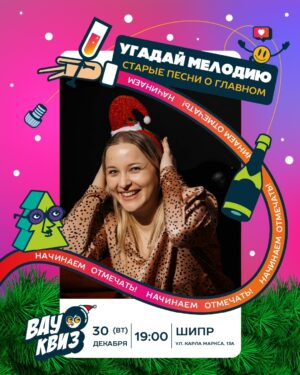 О чём пели, когда интернета не было? О любви, о дружбе, о море и о небе. О самом главном 🫶🏻 Отправляемся в путешествие, где каждая мелодия — это страница из общего альбома наших теплых воспоминаний: 🎶30 декабря (ВТ) 19:00 Угадай мелодию. Старые песни о главном в «Шипр» (Карла Маркса ул. 13а) Будем угадывать песни с первых нот, отдельно послушаем мужские голоса и сразу за ними — женские. Нас ждут музыкальная флора и фауна, а ещё песни о профессиях. Проверим, как хорошо вы помните детали в раунде «Из песни слов не выкинешь» и соберём целый хит-парад «На одну букву». Собираем команду из тех, с кем вас связывает общий музыкальный вкус и годы дружбы, и идем играть 🤩 Регистрация в резерв: ulsk.wowquiz.ru/schedule |