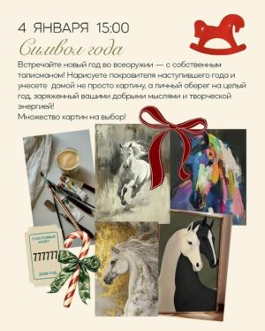 Даруем году Лошади мощь и грацию на холсте! Нарисуем символ 2026 года в стремительном движении, используя энергичные мазки и благородные оттенки 🎠
