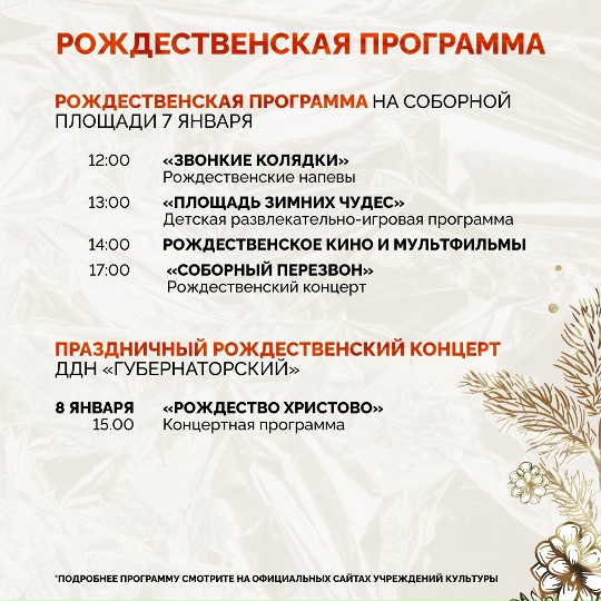 Рождество – это волшебный и теплый праздник, наполненный уютными традициями. Проведите это чудесное время в компании родных под музыку ульяновских коллективов или примите участие и в развлекательной программе на Соборной площади. Наполните свои сердца радостью и вдохновением в этот праздник. Рождественская программа – в карточках! |