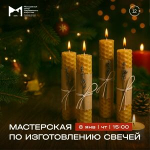 8 января, 15:00 | Мастерская по изготовлению свечей | МЦСИ Молодёжный центр современного искусства приглашает на мастер-класс, который перенесет в эпоху, когда каждая вещь создавалась вручную, с душой и вниманием к деталям. Мы будем создавать свечи не путем заливки, а с помощью изящной и медитативной техники скрутки — одного из древнейших способов свечного дела. Вы узнаете, как скрученные из пчелиного воска свечи ценились за чистоту пламени и медовый аромат, и какую роль они играли в быту и культуре разных эпох — от древних ритуалов до дворянских гостиных XIX века. Вы сможете индивидуализировать свою свечу, добавив в нее подобранные под ваш вкус декоративные детали. Билеты на нашем сайте: clck.ru/3QxJhK |