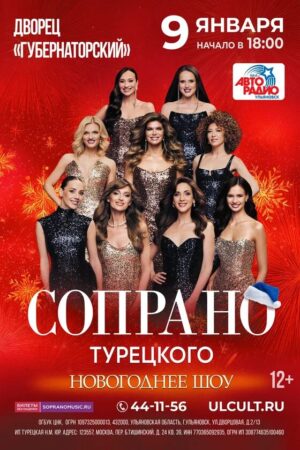 • Разнообразие вокальных тембров: от высокого сопрано до низкого меццо • Богатый репертуар, охватывающий множество жанров: от классики до современных хитов, от джаза до рока, от народных песен до оперных арий • Шедевры российской и мировой эстрады в неожиданных аранжировках • Новогодние песни в уникальном исполнении SOPRANO • Только живой звук SOPRANO Турецкого — это коллектив, отличающийся уникальным звучанием и энергетикой. Каждая исполнительница обладает неповторимым голосом, что позволяет группе виртуозно исполнять музыку разных эпох и направлений, создавая неповторимый музыкальный коктейль. Подарите себе и близким настоящий праздник музыки! Пусть волшебные голоса SOPRANO наполнят ваши сердца радостью и теплом, а заряд новогоднего настроения останется с вами надолго.Ждём вас на концерте! Волшебство музыки — это то, что мы умеем создавать. С любовью, ваши SOPRANO Турецкого