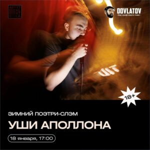 Любители русского слова, мы снова проводим поэтри-слэм в формате открытого микрофона в любимом баре DOVLATOV, вэлком! Правила Ушей Аполлона: — на чтение даётся не более 3 минут, если автор превышает лимит, то он будет отстранён от микрофона; • 18 января, 17.00 Регистрация поэтов: vk.com/topic-235307029_5631… *Для того, чтобы забронировать место за столиком необходимо связаться с администрацией бара: +79084890770. Количество сидячих мест ограничено! Вход — свободные взносы! Фото: Игорь Краюшкин *Для афиши использован лик Егора Копылова (победителя осеннего поэтри-слэма) |