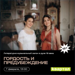 В креативном пространстве пройдёт литературно-музыкальный салон в духе 19 века, посвященный выходу первого издания романа «Гордость и предубеждение» Джейн Остин.
