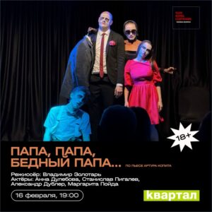 В креативном пространстве пройдёт премьера спектакля «Папа, папа, бедный папа …» по пьесе Артура Копита от лаборатории Театр.Форма.Содержание.