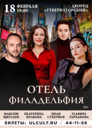 В центре истории — обаятельный женатый бизнесмен, который встречается со своей новой пассией в «отеле «Филадельфия»», в то время как его непробиваемая легенда об отсутствии на работе и дома кажется безупречной. Однако судьба имеет свои планы, и во время одной из таких встреч все герои оказываются в одно время, в одном месте. События, разворачивающиеся далее, включают в себя неожиданные подмены и виртуозные обманы, которые в конечном итоге ведут к настоящей любви, вовлекая героев в водоворот смешных и трогательных моментов. Спектакль яркий и динамичный, благодаря талантливым актёрам – Екатерине Волковой, Глафире Тархановой, Ивану Стебунову, Максиму Щёголеву, которые завоевывают внимание зрителей своей непревзойденной актерской игрой!