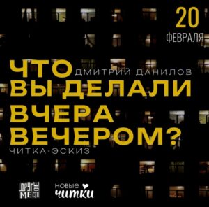 Д. Данилов – писатель, драматург, поэт. Лауреат театральной премии «Золотая маска» (2018 г.), литературной премии «Ясная Поляна» (2022 г.).Автор обозначает жанр пьесы как «невербатим», то есть не относит текст к документальному театру. При этом пьеса очень похожа на вербатим, состоит из монологов и ответов людей на сакраментальный вопрос «Что вы делали вчера вечером?».