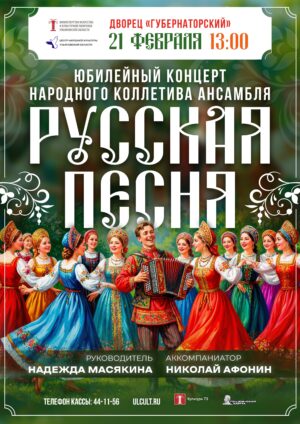 Коллектив выступит с премьерой песни «Я — земля», вспомнив знаменитый 1961 год. Именно тогда Юрий Гагарин покорил космос, а в Ульяновске был создан Русский народный хор профсоюзов, чьи традиции сегодня хранит и продолжает ансамбль «Русская песня». В программе концерта прозвучат любимые советские песни, песни из кинофильмов, а так же знакомые всем казачьи песни такие, как «Любо, братцы, любо!», «По Дону гуляет» и другие.