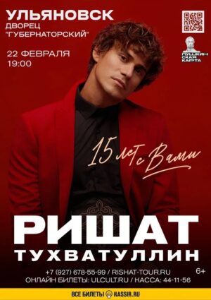 «15 лет вместе» — новая концертная программа Ришата Тухватуллина — выдающегося певца, чье имя стало символом музыкальной культуры двух республик. По вопросам о билетах, купленных не в кассах Дворца «Губернаторский», обращаться в места приобретения