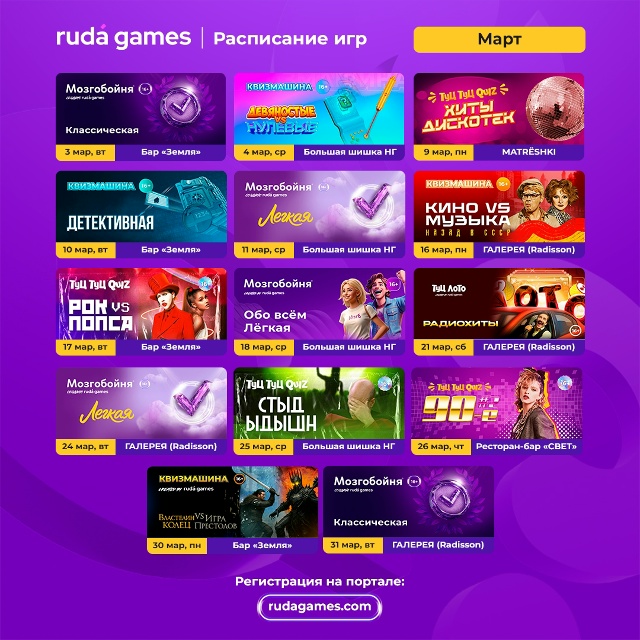 РАСПИСАНИЕ ИГР «Мозгобойня и Туц Туц Квиз» НА МАРТ