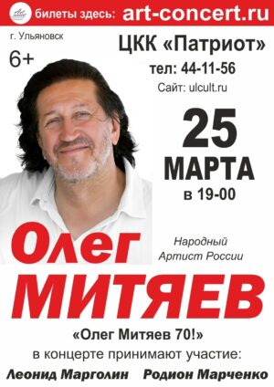 25 марта в 19:00 в Центре «Патриот» состоится концерт Олега Митяева. Дорогие друзья! Мы приглашаем вас на праздник авторской песни, который устраивает для вас народный артист России, известный российский бард Олег Митяев. Концерт «Олег Митяев 70!» состоится 25 марта в г. Ульяновск. В 19-00 часов здесь соберутся давние поклонники артиста и те, кто совсем недавно открыл для себя волшебный мир его песен. «Крепитесь, люди, скоро лето!», «Давай с тобой поговорим!», «Небесный калькулятор», «Она такая же москвичка, как была» и, конечно же, «Как здорово, что все мы здесь…» — все эти песни обязательно прозвучат. «Комик в жизни, злодей на сцене» артист давно понял – для того, чтобы поднять настроение, нужно слушать и писать грустные песни. Вот и заглавная песня, давшая название целому альбому, принесла автору и исполнителю победу в музыкальном национальном конкурсе «Виктория» в номинации «Городской романс» за 2018 год. Купить билет: ulcult.ru/announceme… |