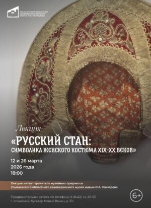 Друзья, приглашаем сегодня на «Лекционный четверг»! 26 марта в 18:00 в Ульяновском областном краеведческом музее имени И.А. Гончарова состоится лекция «Русский стан: символика женского костюма XIX-XX веков». Проводником в мир скрытых смыслов национального русского женского костюма станет хранитель музея — человек, который знает каждый стежок, каждую потускневшую нить в музейной коллекции и может рассказать историю, стоящую за узором. Перед лекцией слушателей ждет погружение в материал: они смогут вживую увидеть то, о чем пойдет речь, на одноименной выставке, где будут представлены элементы русского женского национального костюма XIX-XX веков. (6+) Действует Пушкинская карта. Адрес: бульвар Новый Венец, д. 3/4. Тел.: 8(8422)44-30-53. Купить билет на лекцию 12 марта 2026 г.: vmuzey.com/event/russ… |