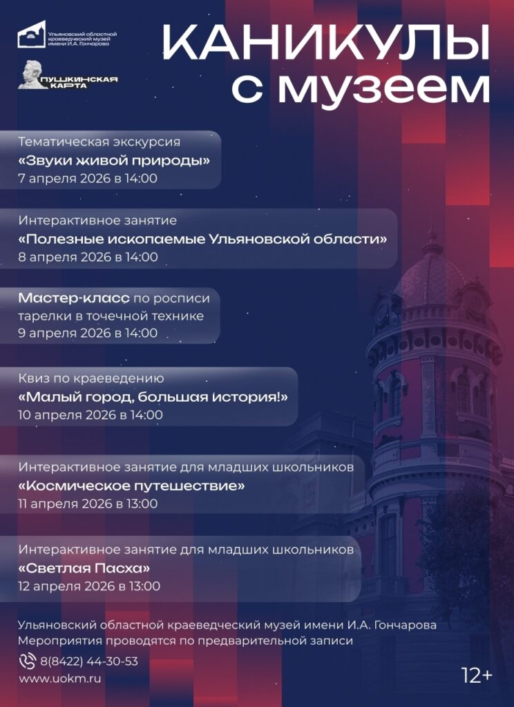 Ульяновский областной краеведческий музей имени И.А. Гончарова подготовил экскурсии, творческие мастер-классы, интерактивные занятия и квиз о природе и истории родного края, о космосе и светлой Пасхе.