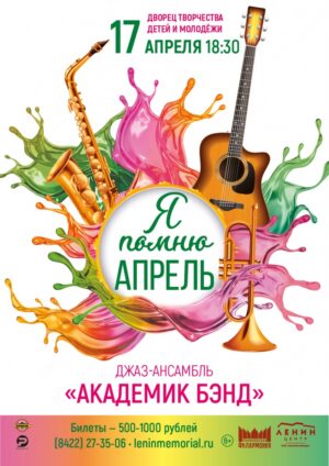 Джаз-ансамбль «Академик Бэнд» Программу представляет Лилиана Черновалова В программе музыка Чарли Паркера, Хораса Силвера, Стинга «I’ll Remember April» («Я буду помнить апрель») – знаменитый джазовый хит, давший название концерту. Песня была написана в 1941 году и впервые прозвучала в комедийном музыкальном фильме «Ride ‘Em Cowboy» (1942). Изначально это была баллада о расставании и светлой грусти по ушедшей любви. Вместе с другими лирическими песнями композиторы поместили её в фильм, чтобы «разбавить» романтикой лихие ковбойские погони – и тем самым гарантировать фильму непременный успех, во многом зависевший не только от хороших шуток, но и от первоклассной музыки. Джазмены быстро разглядели в ней потенциал для экспериментов благодаря её необычной гармонии, которая оказалась настолько интересной, что джазовые музыканты спустя пару лет начали играть её в клубах. Примечательный факт: в этой ковбойской комедии снялась молодая Элла Фитцджеральд (она играет официантку и поёт другую песню) – это добавило фильму джазового шарма и ещё крепче связало его с историей джаза. Позже композицию «I’llRememberApril» – в инструментальной и вокальной версиях – исполнили многие великие джазмены ХХ столетия, каждый интерпретировал эту тему по-своему, внеся оригинальные и неповторимые черты. Среди исполнителей – саксофонист Чарли Паркер, трубач Клиффорд Браун, пианист Билл Эванс, певец Фрэнк Синатра. Вместе с темой «I’llRememberApril» на концерте прозвучит музыка Чарли Паркера, Хораса Силвера и Стинга. Каждый из них внёс свою весомую лепту в искусство джаза. Чарли Паркер по прозвищу Bird (Птица) – величайший альт-саксофонист и главный реформатор джаза, чей стиль навсегда изменил облик современной музыки. Он стал одним из основателей бибопа – стиля, который превратил джаз из развлекательной музыки в интеллектуальное искусство. Неслыханная виртуозность, экспериментальный гармонический язык и ритмическая свобода сделали его импровизации богаче и сложнее, чем в эпоху свинга. Хорас Силвер – пианист и композитор, который вывел джаз из сверхскоростных дебрей бибопа к более «земному», качающему звучанию. Его называют основателем стиля хард-боп. Силвер вернул в джаз простоту и драйв, соединив современные гармонии с корнями афроамериканской культуры. Он одним из первых начал использовать элементы госпела и блюза, мастерски вплетал в джазовые пьесы португальские мотивы. Его игра была лаконичной, ударной и невероятно ритмичной. Стинг – один из самых многогранных музыкантов современности. Его музыка – это сложный сплав рока, джаза, поп-музыки, регги и классических элементов. В своих композициях Стинг умело сочетает интеллектуальные тексты с доступными мелодиями: его работы часто содержат литературные аллюзии и цитаты. Личные увлечения музыканта восточными практиками часто находят отражение в его лирике и спокойной, медитативной подаче поздних альбомов. Билеты — 500-1000 рублей