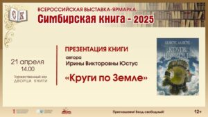 📚21 апреля 2026 года в 14.00 в рамках Всероссийской выставки-ярмарки и XXIII Областной выставки–конкурса издательской продукции «Симбирская книга – 2025» в Торжественном зале Дворца книги состоится презентация книги Ирины и Андрея Юстус «Круги по земле».