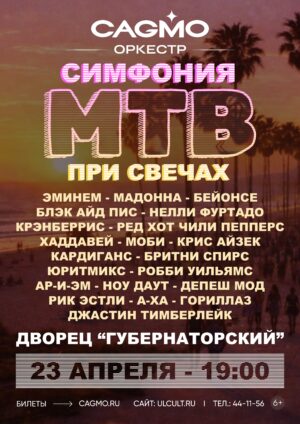 CAGMO представляет новую концертную программу-ретроспективу культовой эпохи MTV — «Симфония MTV» в исполнении оркестра при свете свечей. По вопросам о билетах, купленных не в кассах Дворца «Губернаторский», обращаться в места приобретения