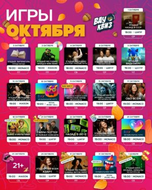 Расписание игр Мозгобойня и Туц Туц QUIZ на октябрь