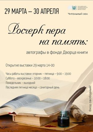 Книжно-иллюстративная выставка «Росчерк пера на память: автографы в фонде Дворца книги»